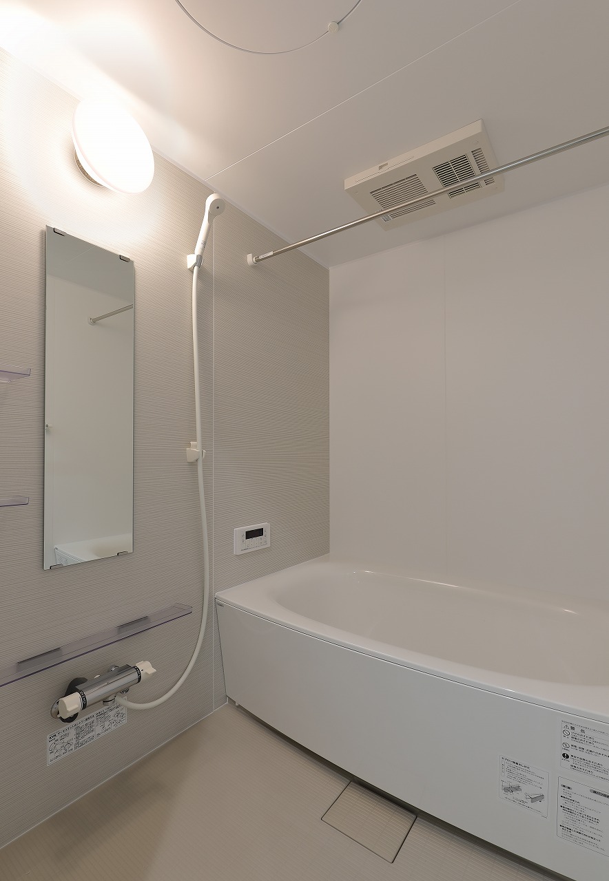 バストイレ別、バルコニー、エアコン、ガスコンロ対応、クロゼット、フローリング、シャワー付洗面台、TVインターホン、浴室乾燥機、エントランスオートロック、室内洗濯置、シューズボックス、システムキッチン、温水洗浄便座、洗面所独立、洗面化粧台、2口コンロ対応、駐輪場、宅配ボックス、CATV対応可、外壁タイル張り、閑静な住宅地、防犯カメラ、照明付、全居室洋室、ウォークインクロゼット、バイク置場、ディンプルキー、物置、24時間換気システム、BS、インターネット月額利用料無料、敷地内ごみ置き場、ガスファンヒーター用ガス栓、築浅