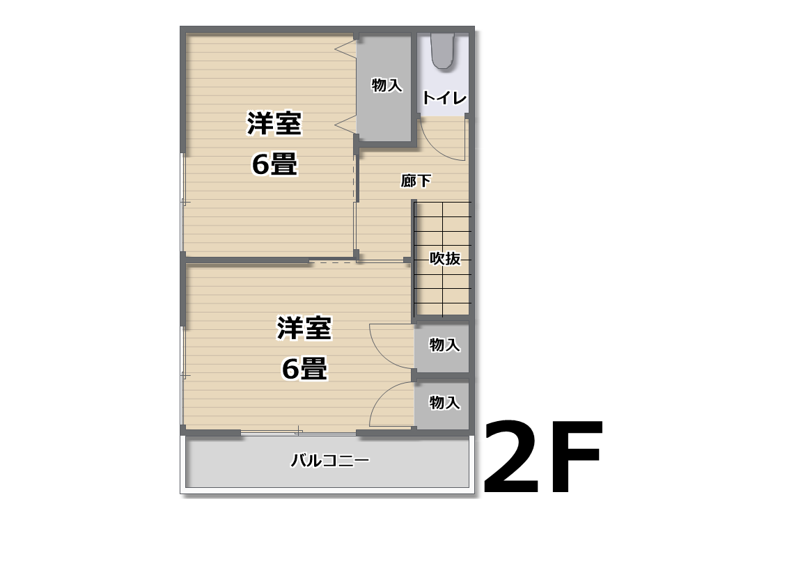 2F 洋室6畳 洋室6畳 物入 バルコニー
