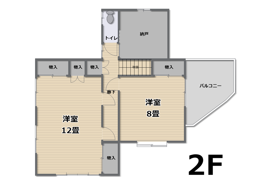 2F:洋室8畳 洋室12畳 バルコニー 納戸 トイレ