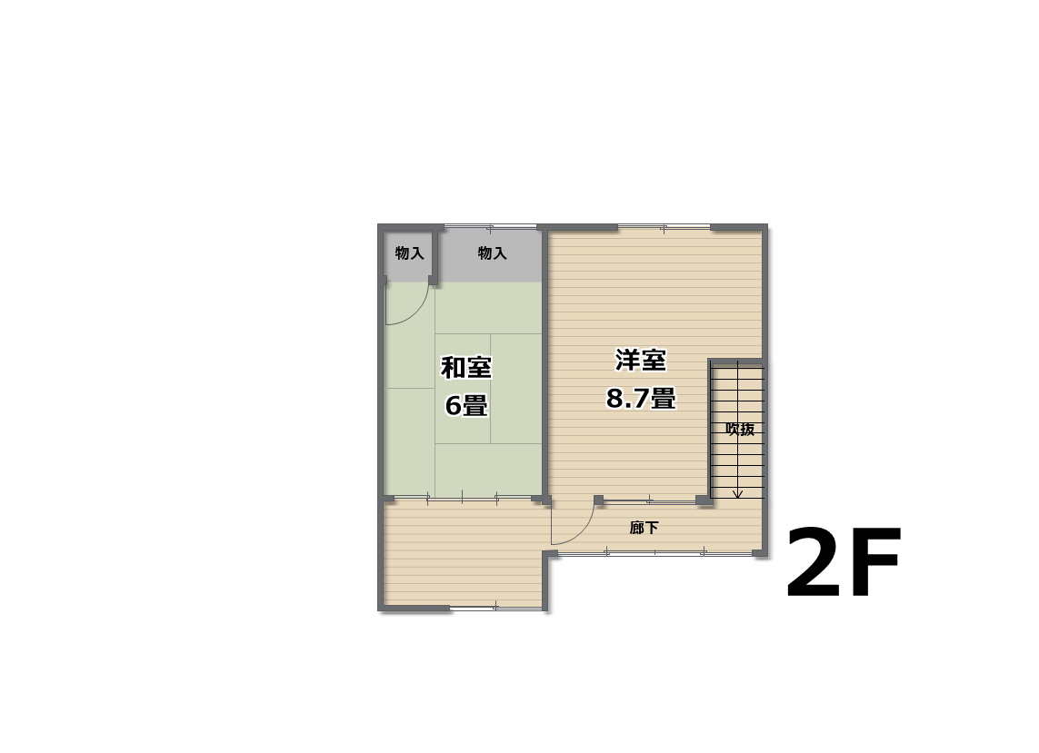 2F:洋室8.7畳 洋室6畳 物入